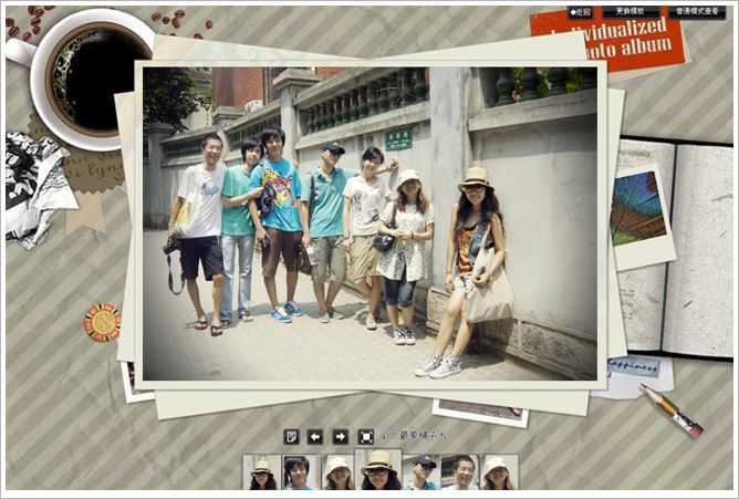 接到需求之初,項(xiàng)目組的同學(xué)們對(duì)個(gè)性相冊(cè)的頭緒還不明晰,開(kāi)發(fā)對(duì)設(shè)計(jì)的約束也還沒(méi)有具體的說(shuō)明。為了大家在討論時(shí)能有圖可依,我以迅雷不及掩耳盜鈴(囧)的速度輸出了以文件袋中的相片為情景的版本,拿著草稿便找到了產(chǎn)品和開(kāi)發(fā)的同學(xué)討論了。果然一百個(gè)人心中有一百個(gè)“個(gè)性相冊(cè)”,討論很激烈,這個(gè)未經(jīng)過(guò)深思熟慮的版本順理成章的被pk掉了,換來(lái)的是我們對(duì)相冊(cè)風(fēng)格樣式,照片瀏覽方式細(xì)致的梳理。