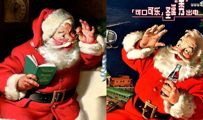 說(shuō)到可口可樂(lè),人們不得不感嘆這個(gè)品牌的紅白神話,也許很多人不知道,大家熟知的穿紅白衣服的圣誕老人是可口可樂(lè)為了宣傳而創(chuàng)作出來(lái)的,在20世紀(jì)30年代和40年代,這一形象一直被用作該公司的廣告活動(dòng)中。久而久之,人們就以為圣誕老人是穿一生紅白裝的老人。而此之前圣誕老人的打扮是五顏六色的。視覺(jué)識(shí)別的影響可見(jiàn)一般。