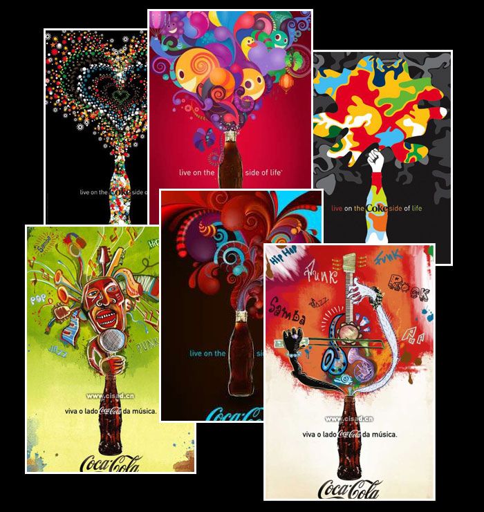 雖然風(fēng)格迥異,卻始終邁著一致的步伐來(lái)傳達(dá)可口可樂(lè)的百年經(jīng)典。識(shí)別視覺(jué)的成功運(yùn)用讓人一眼就能認(rèn)知,這我想就是品牌的力量也是品牌的價(jià)值所在。
