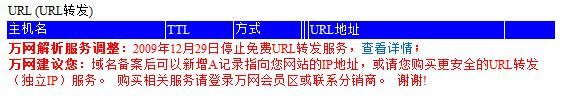 29日14時(shí),萬網(wǎng)已全面叫停Url轉(zhuǎn)發(fā)。