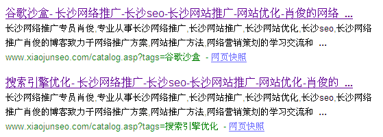 2、博客標(biāo)簽可以提高博客谷歌收錄數(shù)量,也能一定程度上提高博客在谷歌的權(quán)重:我的網(wǎng)絡(luò)推廣博客在谷歌的排名由最初的八十多名,然后上升到首頁,現(xiàn)在關(guān)鍵詞“長沙網(wǎng)絡(luò)推廣”排名谷歌第一位,而另一個關(guān)鍵詞“長沙SEO”谷歌排名從之前的九十多名到現(xiàn)在三十幾名,“長沙網(wǎng)站推廣”也排到了谷歌的第23位,和之前的排名情況相比,幾個關(guān)鍵詞的排名都有所上升。