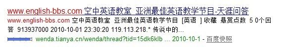 最近,測(cè)試了很多做外鏈的方式,其中一種就是針對(duì)于天涯問(wèn)答的推廣方式,下面給大家分享一下天涯問(wèn)答做外鏈的效果和辦法。因?yàn)樘煅膯?wèn)答的收錄很快,權(quán)重很高,而且外鏈有效,所以是非常棒的選擇。昨天,我在天涯問(wèn)答發(fā)表的一片帖子,今天查詢外鏈,就出現(xiàn)在了查詢頁(yè)首頁(yè),截圖說(shuō)明:
